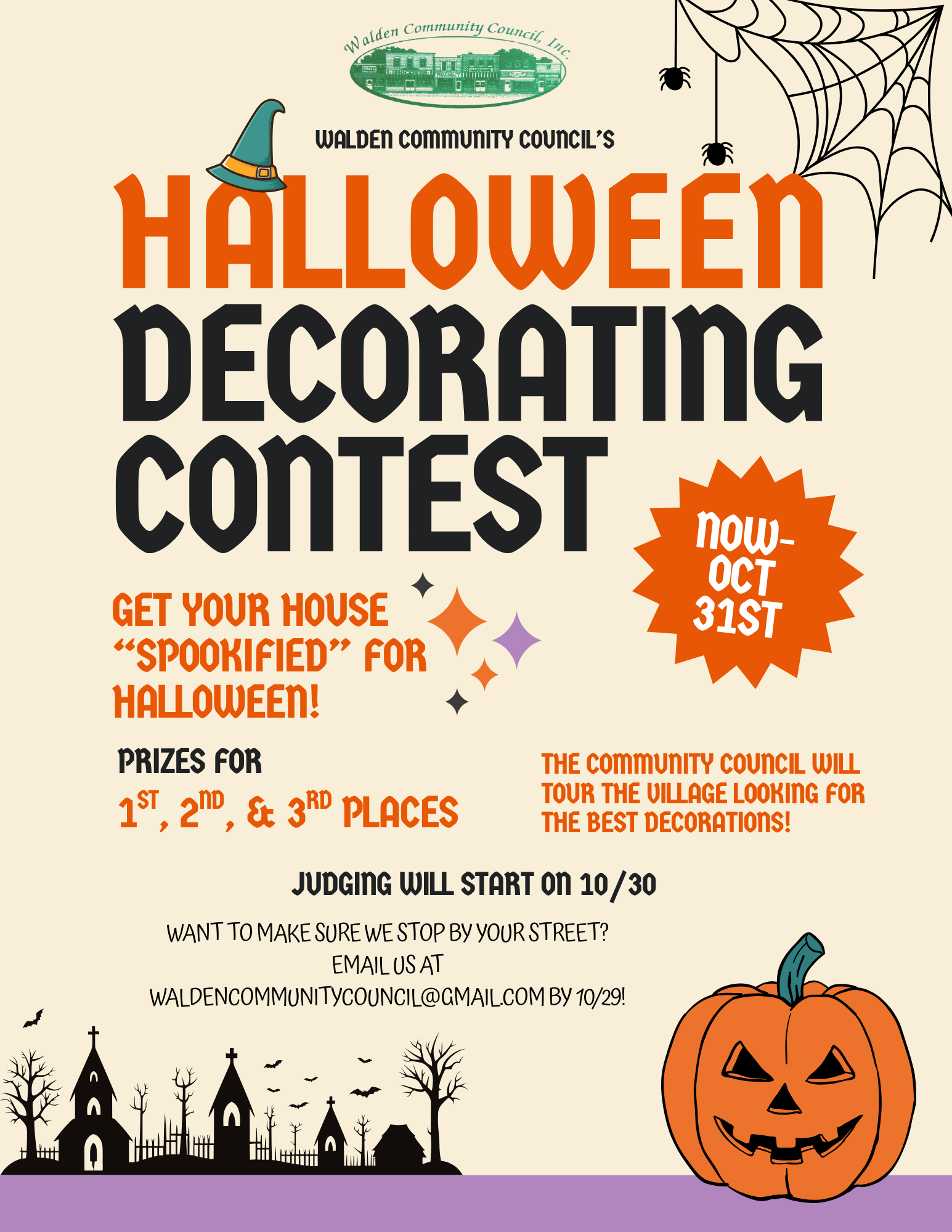 Halloween Decorating Contest Monday, October 6, 2025 10:30 AM Friday, October 31, 2025 9:00 PM Google Calendar ICS